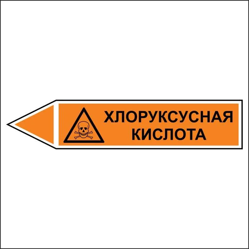 Знак маркировки трубопровода Хлоруксусная кислота - направление движение налево