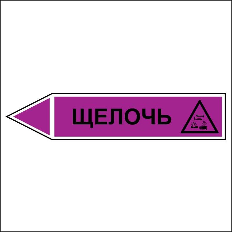 Знак маркировки трубопровода Щелочь - направление движение налево