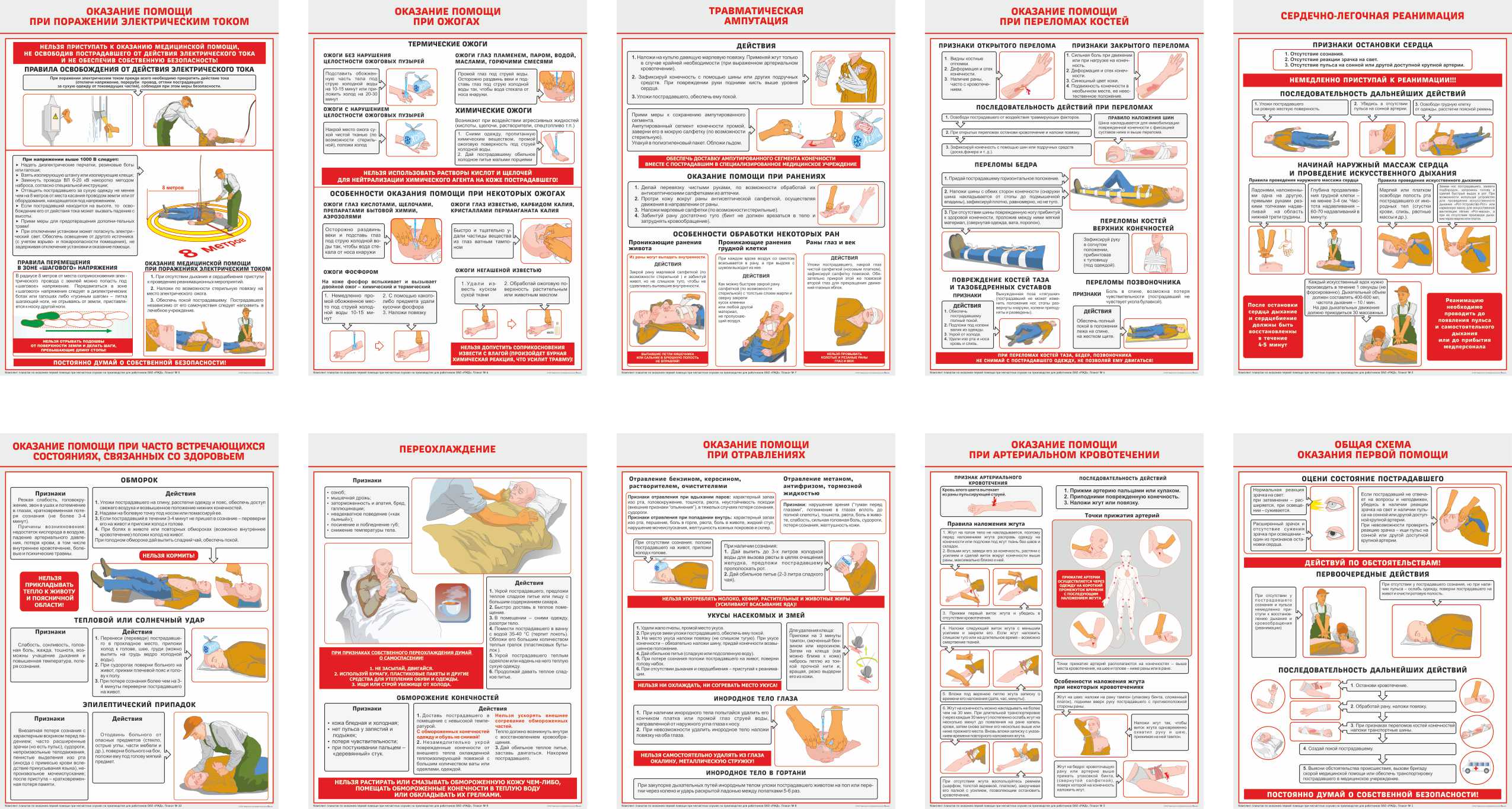 Первая медицинская помощь для ОАО РЖД, комплект 10 плакатов (А2; Бумага, ламинированная; )