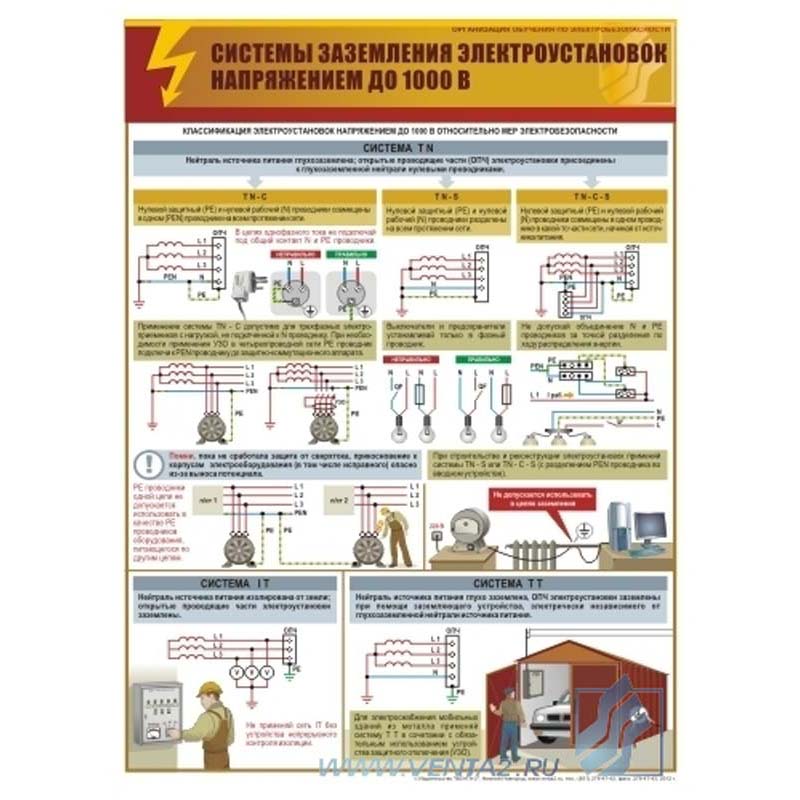 Информационный плакат Электробезопасность. Защитное заземление и зануление
