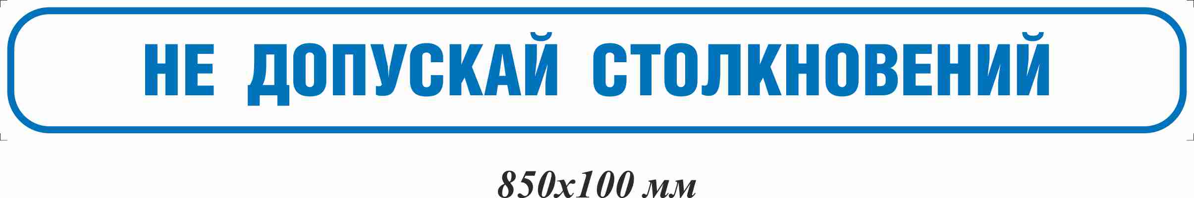 Наклейка информационная на ступени Не допускай столкновений 850х100 мм, материал пленка ПВХ самоклеящаяся, форма прямоугольная края закругленные, цвет белый/синийАрт. IT-850x100-PS1