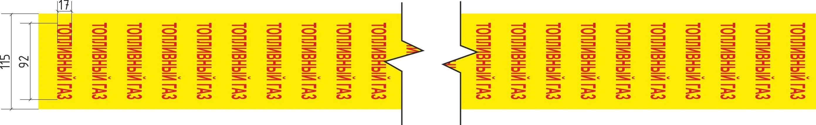 Лента маркировочная Газ низкого давления, 115 мм х 20 м, 92 мм, цвет фона желтый