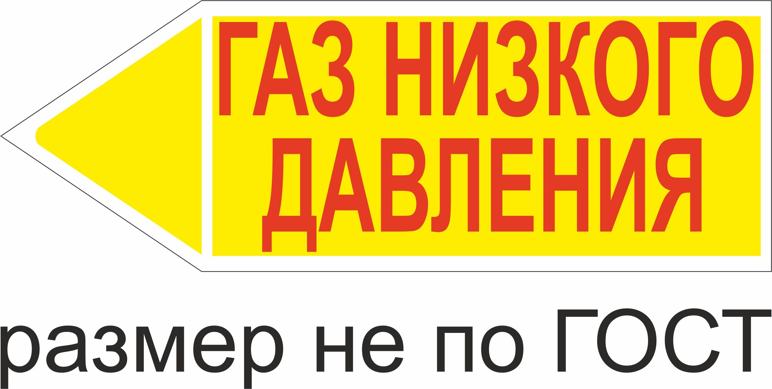 Маркер самоклеящийся Газ низкого давление 148х420 мм, фон желтый, буквы красные, налево