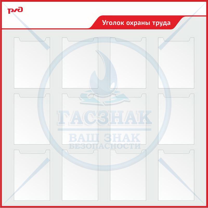 Стенд информационный пластиковый Уголок охраны труда, профиль ПВХ красный, 820х820, 6 карманов А4