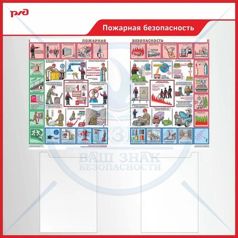Стенд Уголок охраны труда, 1 горизонтальный карман А3, 4 объемных кармана А4, 5 плоских карманов А4 (1650х950; Пластик ПВХ 4 мм, пластиковый профиль; )