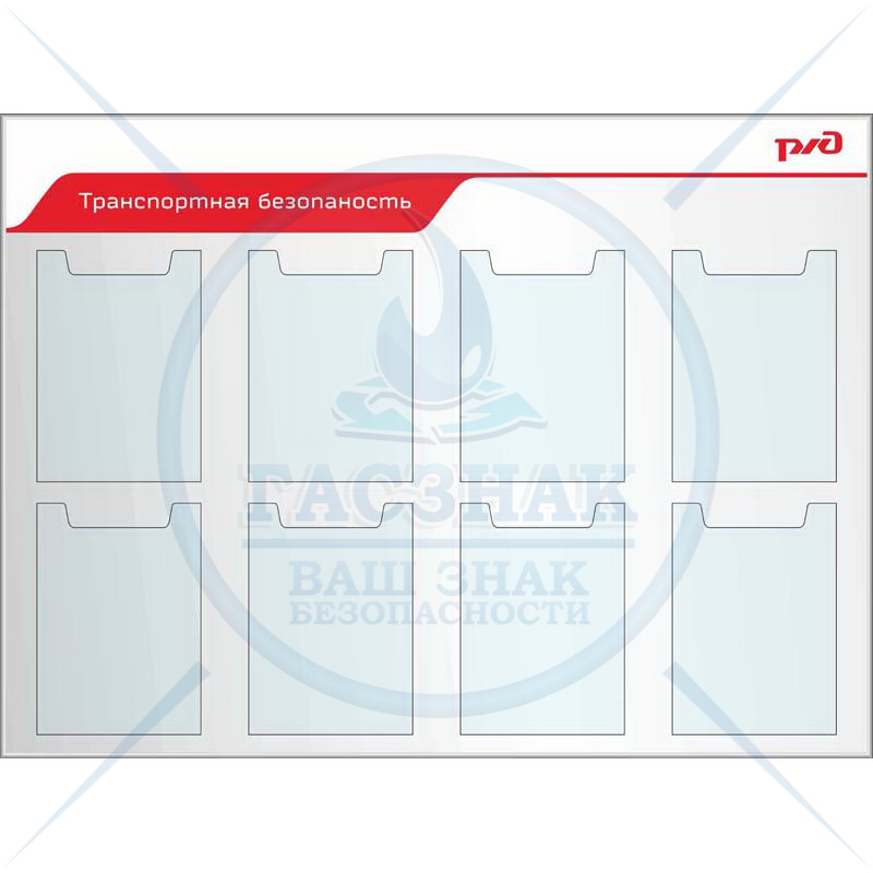 Стенд Безопасность движения РЖД, 10 карманов А4, перекидная система на 10 ячеек (1600х1200; Пластик ПВХ 4 мм, алюминиевый профиль; )