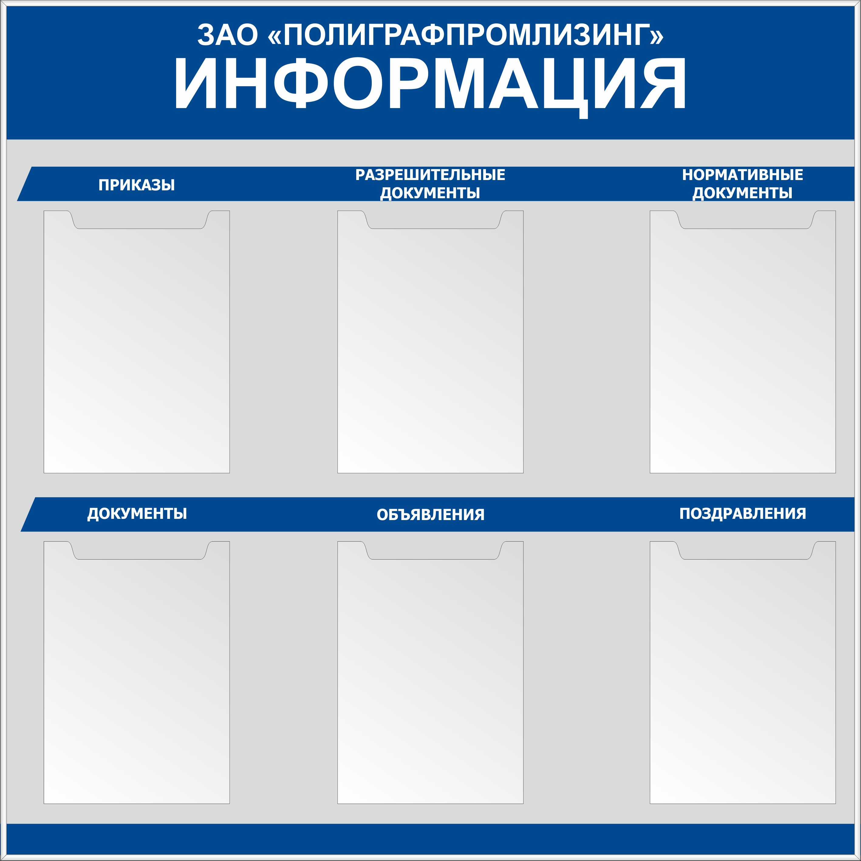 Стенд информационный (6 объемных карманов А4) (Пластик ПВХ 4 мм; 1000х1000)