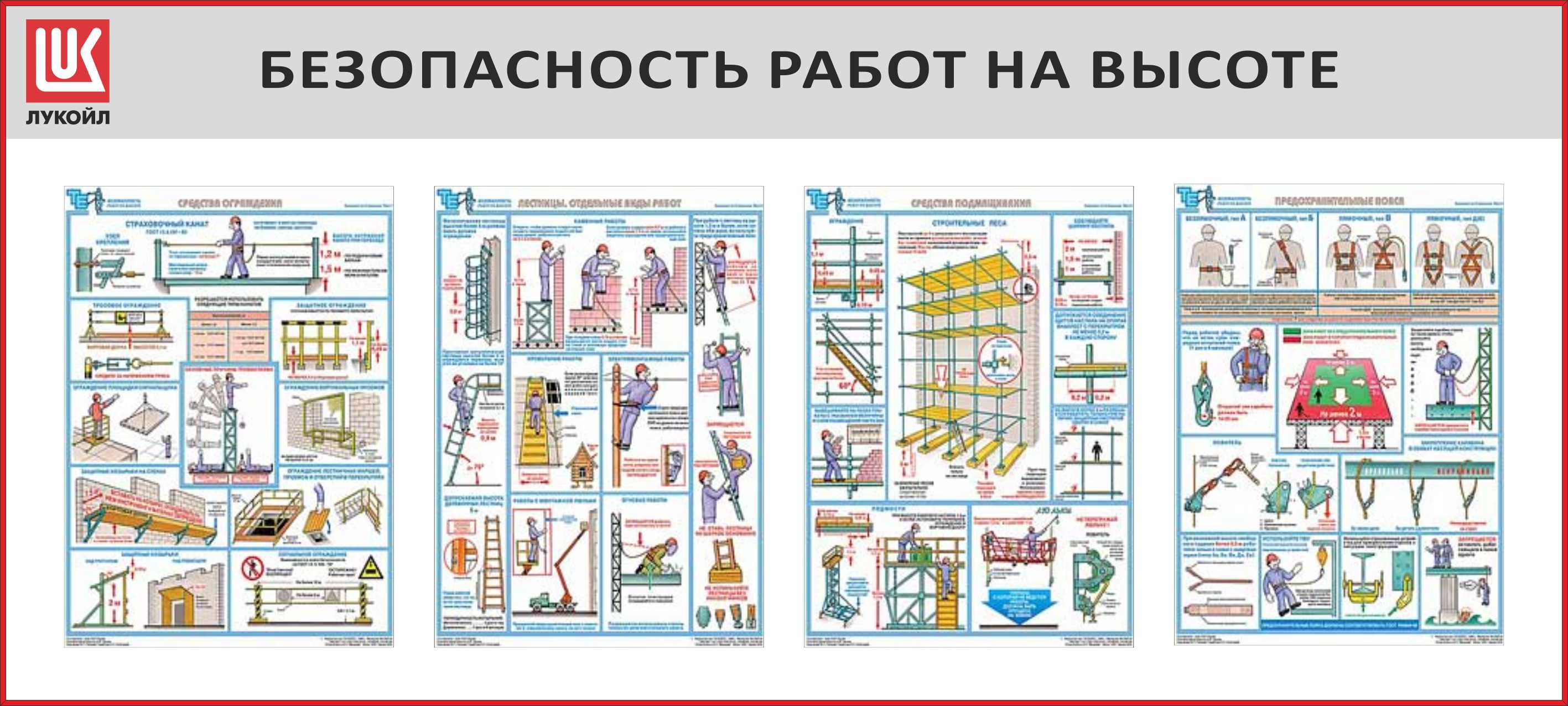 Стенд Безопасность работ на высоте, 4 плаката А2, Логотип (2000х900; Пластик ПВХ 4 мм, алюминиевый профиль; Алюминиевый профиль)