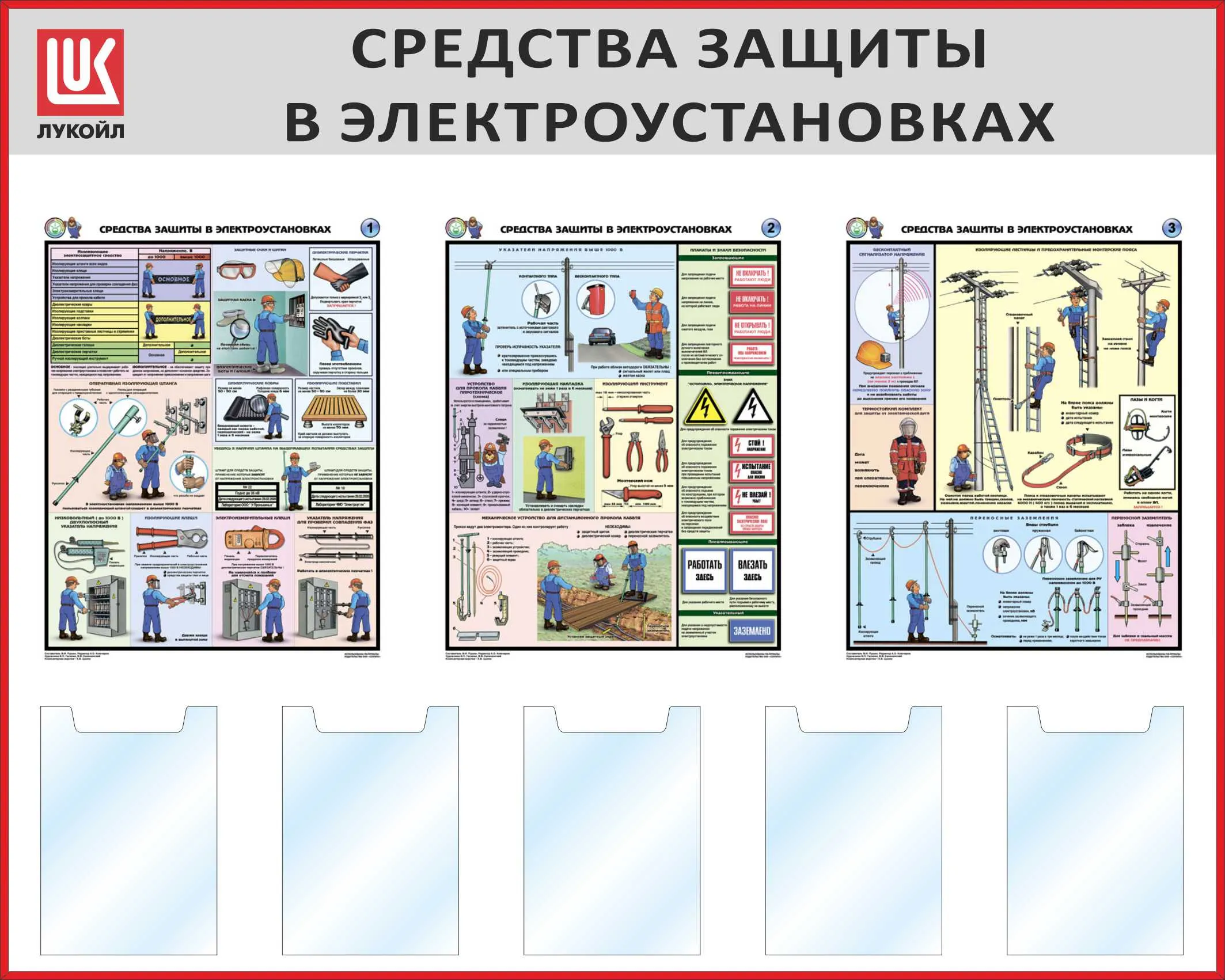 Стенд Средства защиты в электроустановках, Логотип (1500х1200; Пластик ПВХ 4 мм, пластиковый профиль; Пластиковый красный)