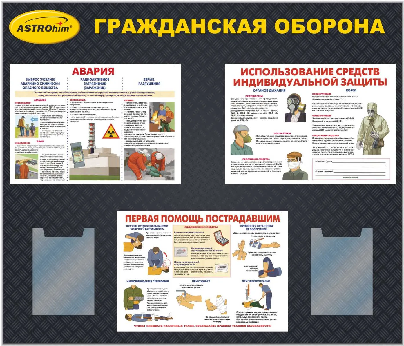 Стенд по ГО и ЧС,4 кармана А4, 2 кармана А3 (1100х900; Пластик ПВХ 4 мм, алюминиевый профиль; )