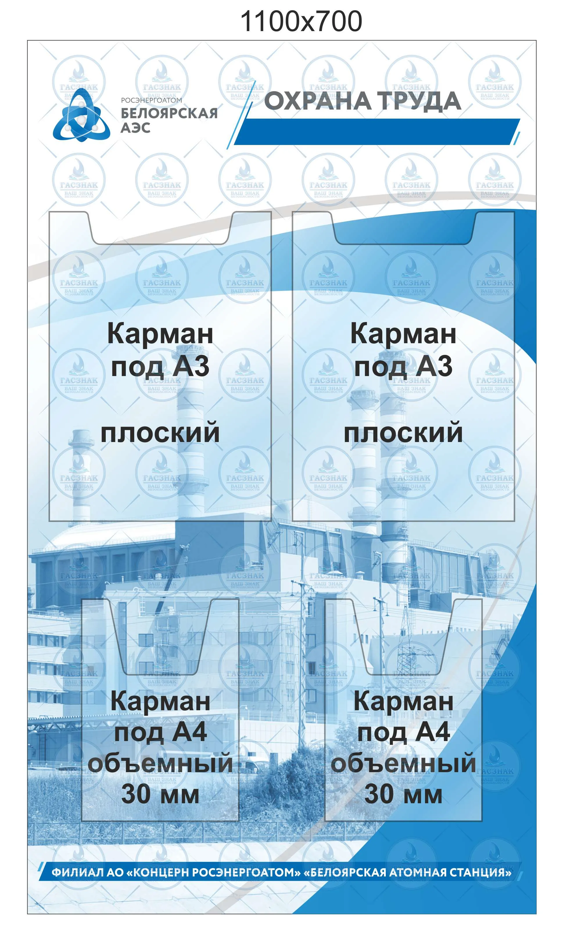 Стенд Информационный, (2 кармана под плакаты А3, 2 объемных кармана А4)