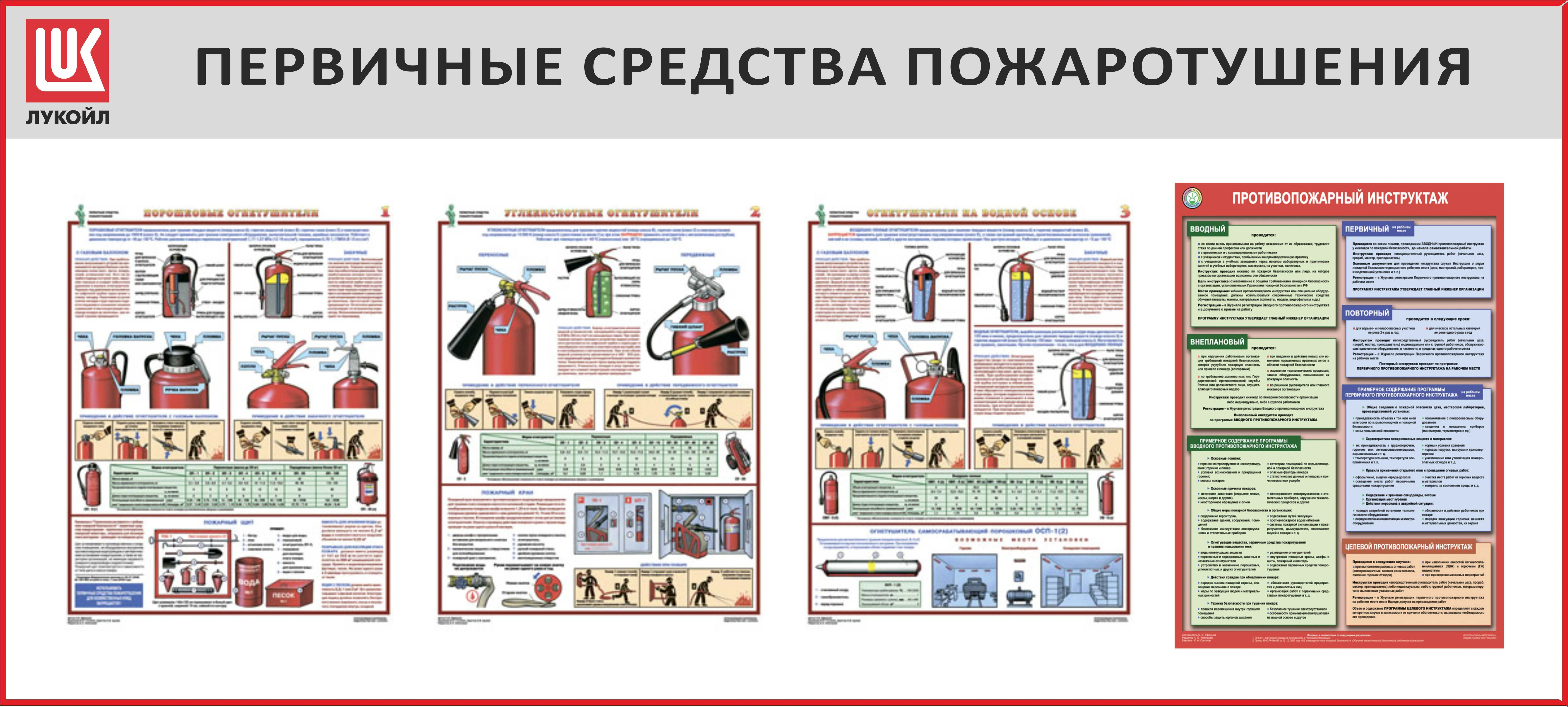 Стенд Первичные средства пожаротушения, 4 плаката А2, Логотип (2000х900; Пластик ПВХ 4 мм, алюминиевый профиль; Алюминиевый профиль)