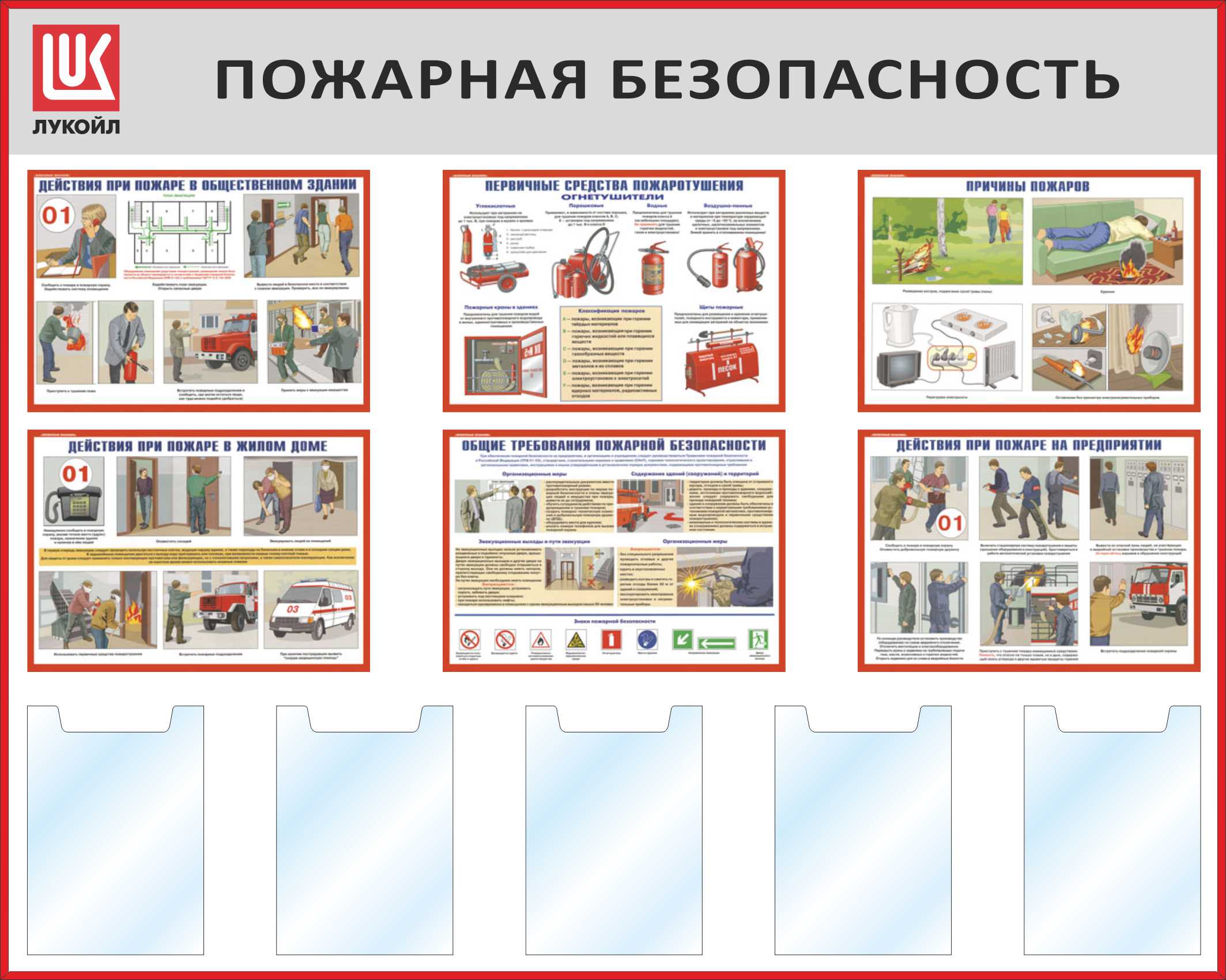 Стенд Пожарная безопасность. Перекидная система А2х5шт., Логотип (1100х850; Пластик ПВХ 4 мм, пластиковый профиль; Пластиковый)