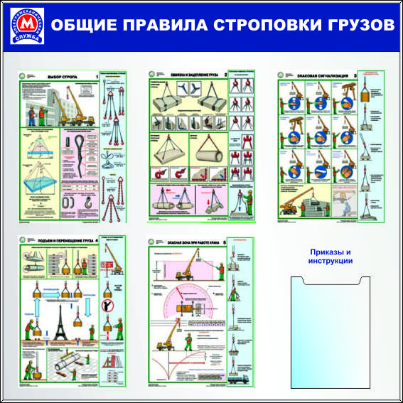 Стенды по охране труда Охрана труда (Метрополитен) Общие правила строповки , 5 плакатов, А4х1 шт плоский (Пластик ПВХ 4 мм; 1100х1100)