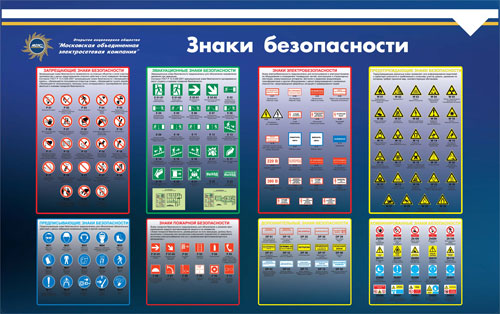 Стенд Знаки безопасности, Логотип (1600х1200; Пластик ПВХ 4 мм; Алюминиевый профиль)