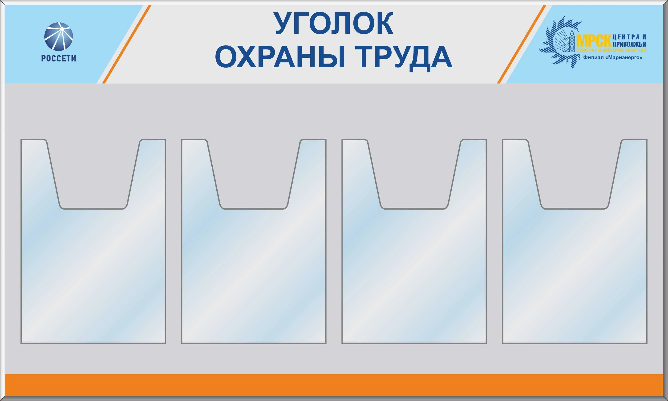 Стенд Уголок охраны труда, 4 объемных кармана А4 (1000х600; Пластик ПВХ 4 мм, алюминиевый профиль;)