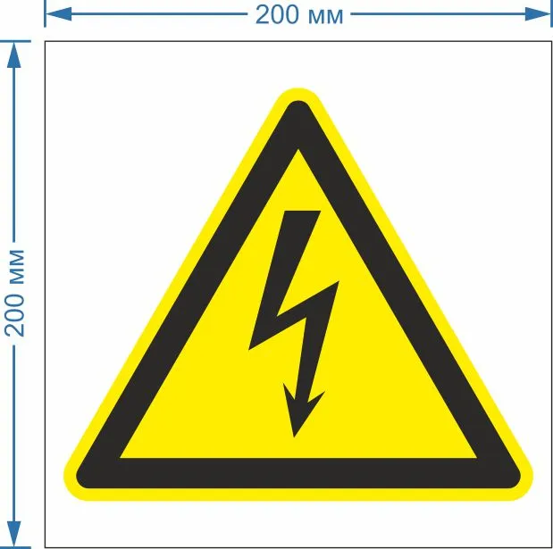 Знак W08 Опасность поражения электрическим током (200х200; Пластик ПВХ 3 мм ) ГОСТ Р 12.4.026-2015Продукция произведена на территории Российской Федерации и соответствует критериям подтверждения российского происхождения согласно Постановлению Правительства РФ № 719. Номера реестровых записей: 10651105, 10626803. Код ОКПД 2: 32.99.53.190 и 22.29.29.190.