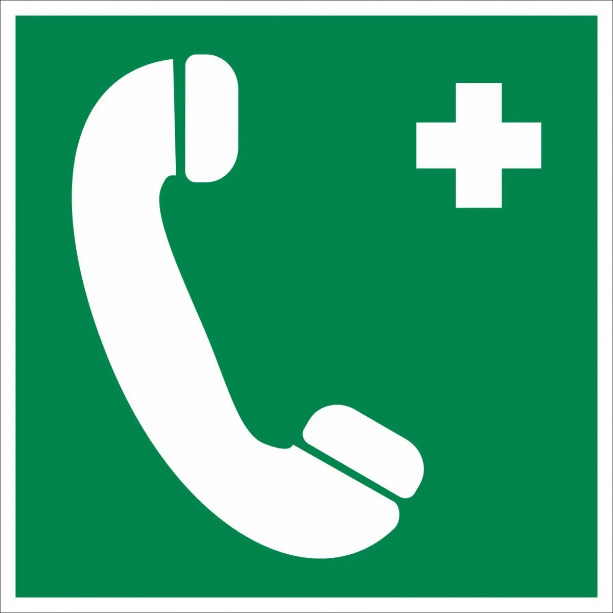 «Телефон связи с медицинским пунктом или скорой мед. помощью» входит в категорию знаков, относящихся к области медицины и санитарии. Посредством этого знака обозначают места на территории предприятий, где есть телефонный аппарат, по которому при необходимости можно связаться с медучреждением и вызвать медпомощь. Используется в местах установки телефонов. Цветографическое исполнение — на зеленом прямоугольном фоне размещена белая пиктограмма телефонной трубки, которая передает смысл медицинского знака. Общепринятая кодировка — ЕС06.Продукция произведена на территории Российской Федерации и соответствует критериям подтверждения российского происхождения согласно Постановлению Правительства РФ № 719. Номера реестровых записей: 10651105, 10626803. Код ОКПД 2: 32.99.53.190 и 22.29.29.190.