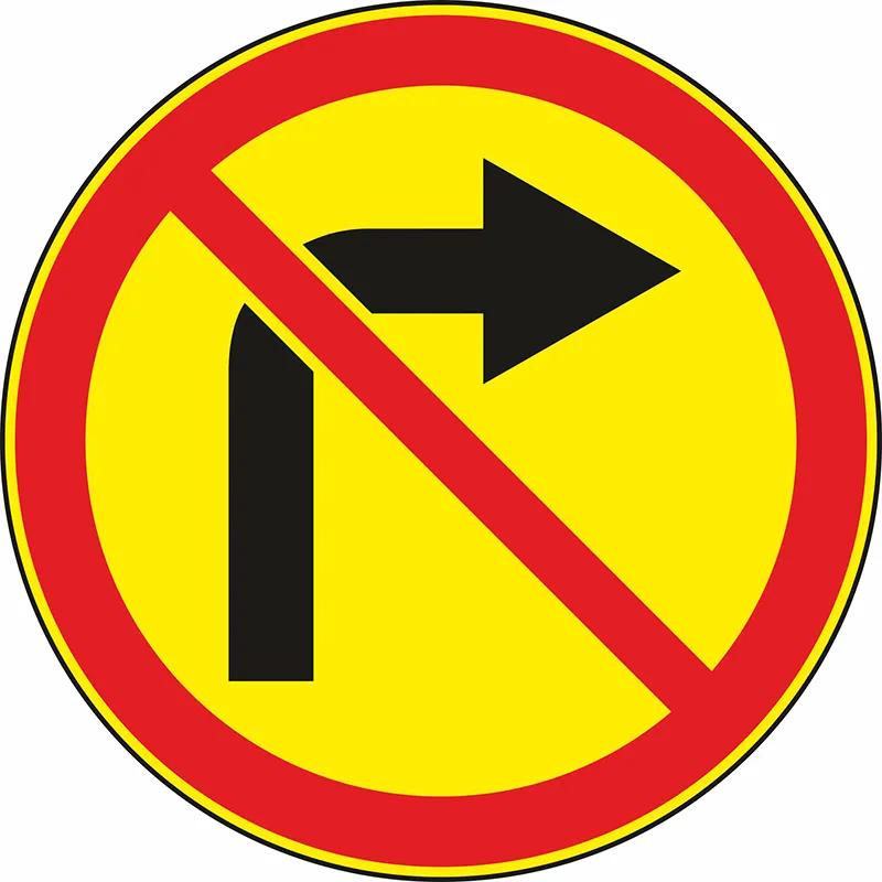 «Поворот направо запрещен» — знак, используемый для запрещения поворота в указанном направлении на ближайшем пересечении проезжих частей. Устанавливается в местах производства дорожных работ прямо перед пересечением в случаях, если требуемый порядок движения нельзя обеспечить посредством предписывающих знаков. Часто размещается вместе с табличкой 8.1.1 для оповещения о начале действия запрета через определенное расстояние. Запрет распространяется лишь на тот маневр, что изображен на табличке — во всех остальных направлениях движение разрешено. Действие знака не имеет силы для маршрутного транспорта.