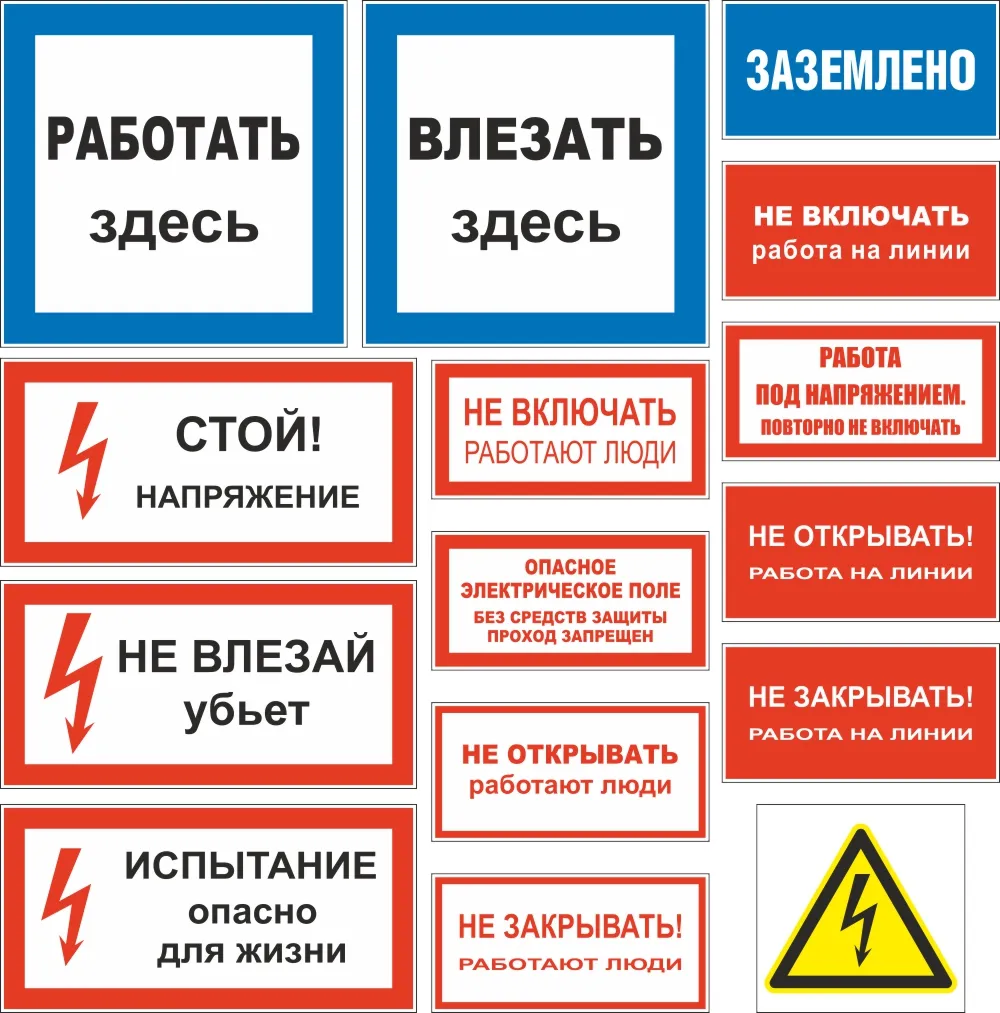 | 10 | Плакат «Работа под напряжением. Повторно не включать!» | мм | 100х200 |
