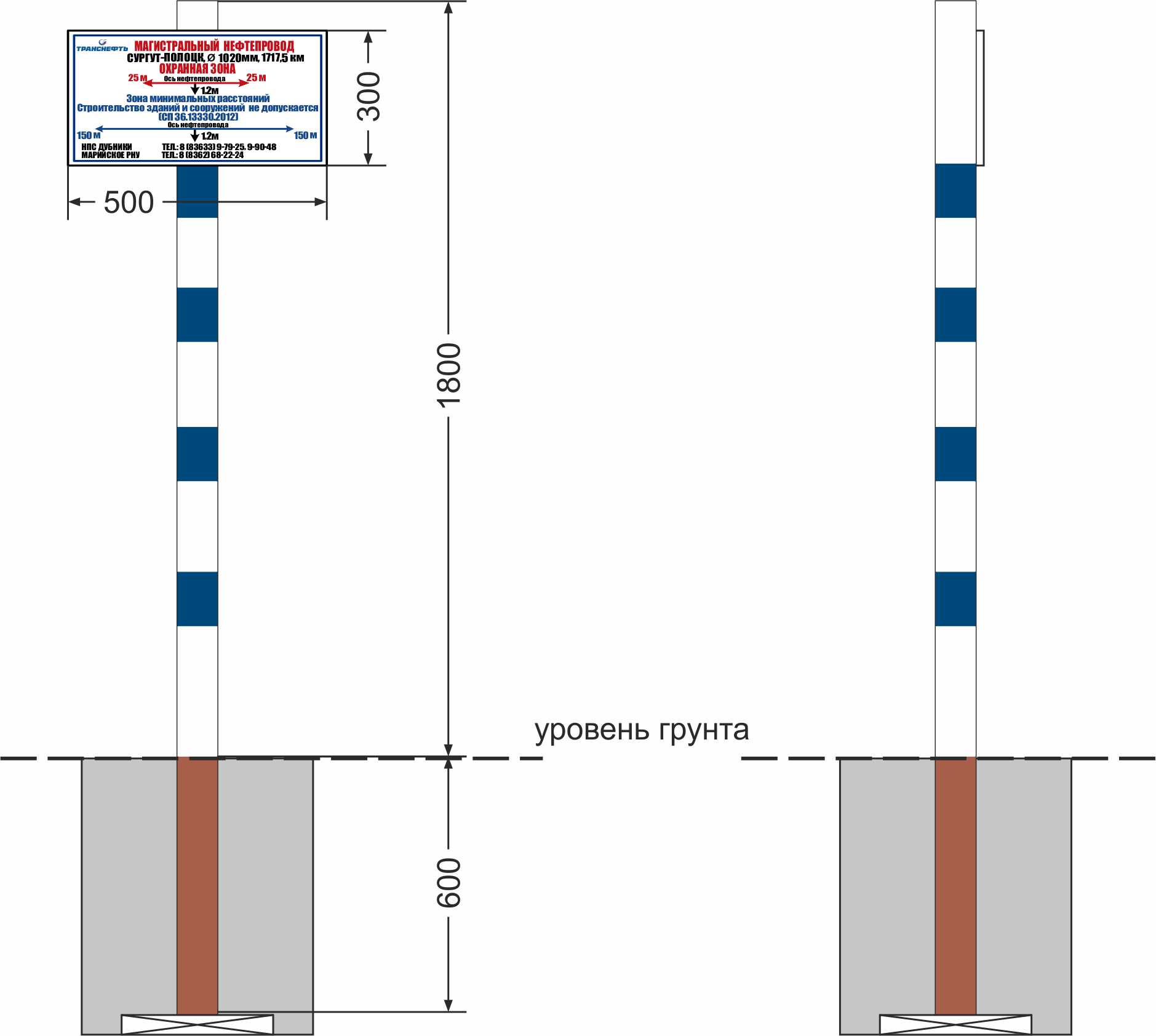 1. трехгранная (в сечении равносторонний треугольник со стороной 180мм) информационная стойка из морозостойкого, негорючего специального полимерного композита с информационными надписями;